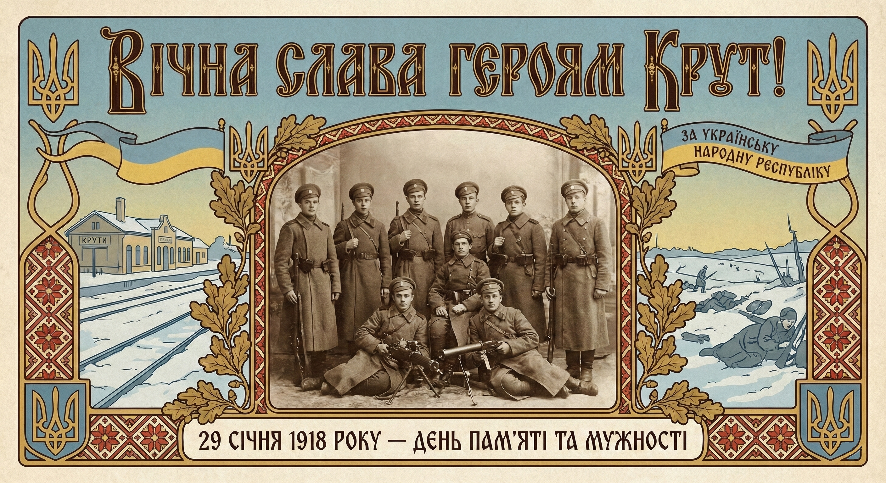 Сьогодні, 29 січня, Україна вшановує пам’ять захисників Української Народної Республіки, які у 1918 році прийняли нерівний бій проти більшовицької навали на залізничній станції Крути. Їхній подвиг став символом патріотизму та жертовності у боротьбі за незалежність. |
